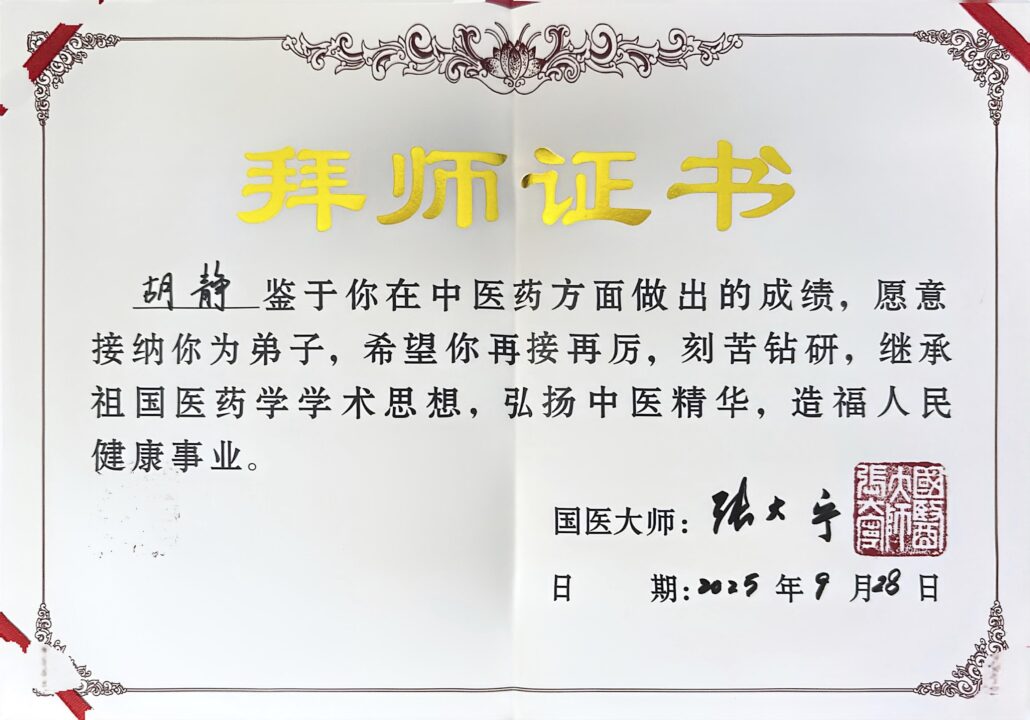 胡静正式拜师国医大师张大宁先生